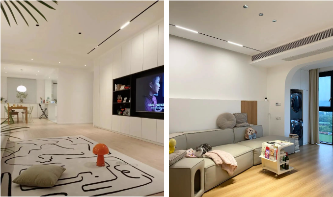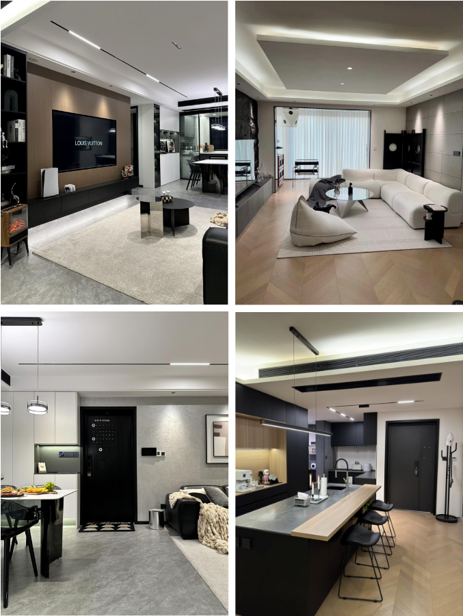 在燈具上偏好以無主燈營造大氣與高級氛圍,線條利落大氣,極具質感;又或選擇簡約的造型,沒有繁雜的裝飾,以達到極致的空間感與采光效果。