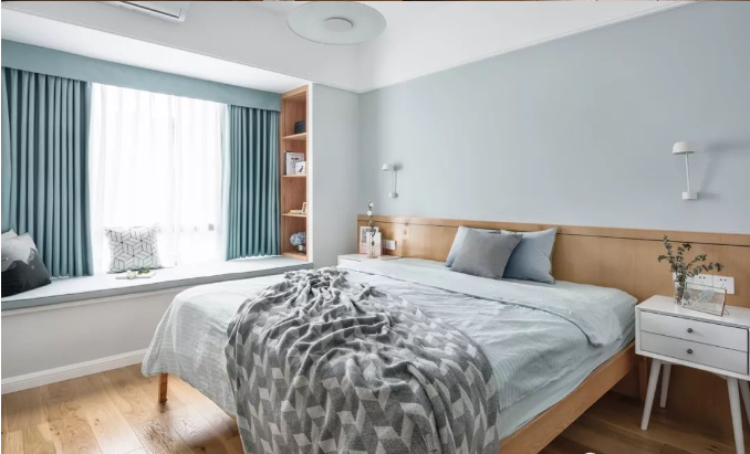 很多業主覺得臥室飄窗不實用,想要把這部分的空間利用起來,那么你也可以根據飄窗的形狀和大小,將其打造成多功能區域。