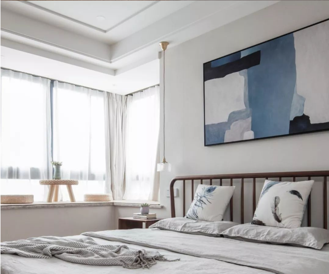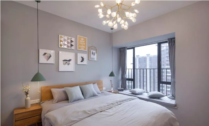 臥室飄窗是一個很好的休閑之處,因為有大面積的玻璃,視野很好,采光也很好,可以在這里靜看窗外風景,曬太陽休閑都是不錯的選擇。