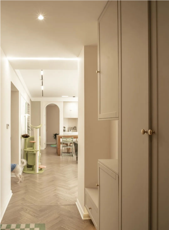 4、獨(dú)立式玄關(guān):對(duì)于沒(méi)有自然形成玄關(guān)的戶型,可以通過(guò)設(shè)計(jì)一個(gè)獨(dú)立的玄關(guān)區(qū)域來(lái)實(shí)現(xiàn)空間的劃分和收納功能的擴(kuò)展。