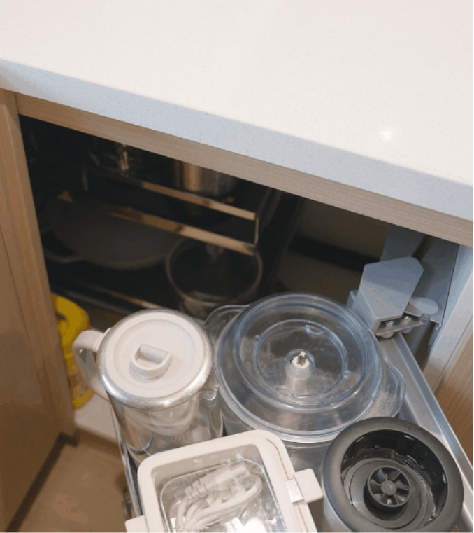 柜子轉角處物品拿取物品過于費力?配置拉籃一鍵解決,釋放廚房死角空間。