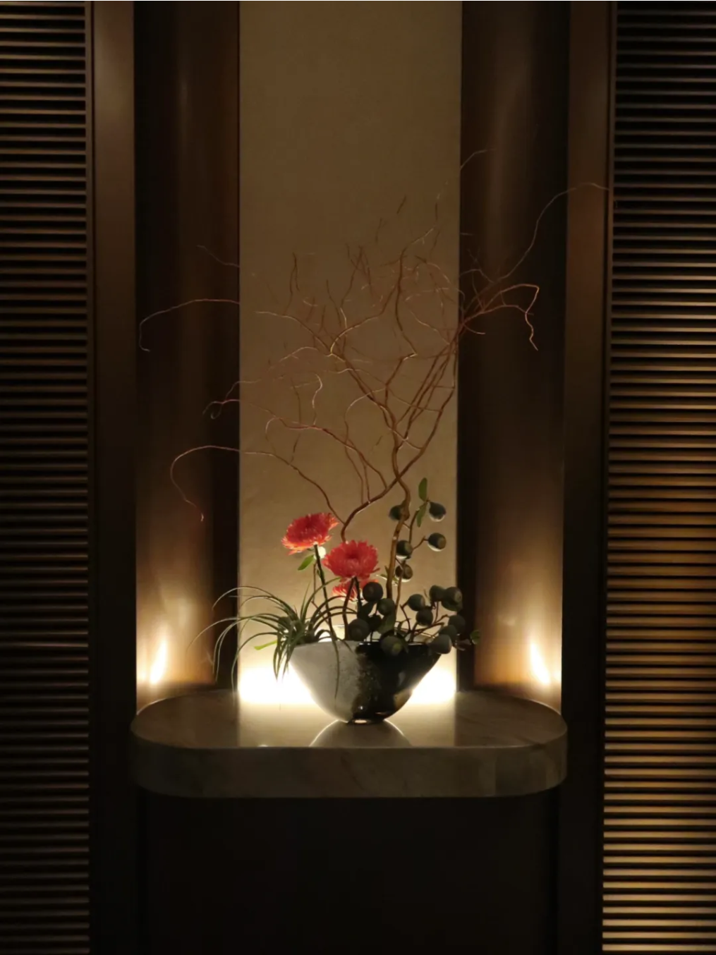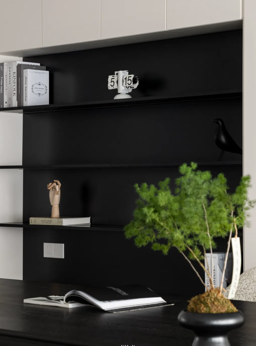 考慮到書房和茶室的空間限制,生長速度慢的小型盆栽,最為合適。