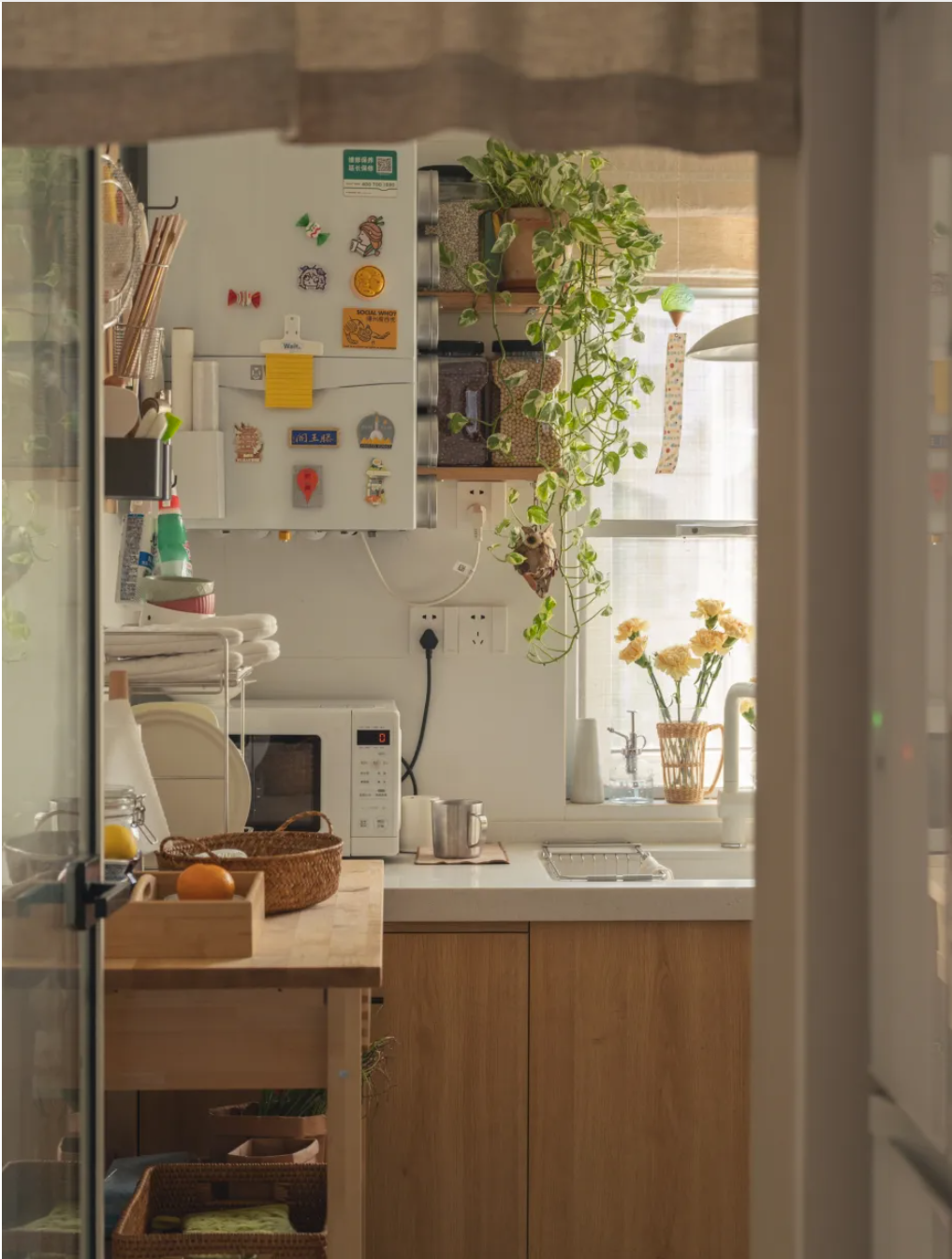 或者也可以搭配清爽干凈的綠植,進行廚房點綴。